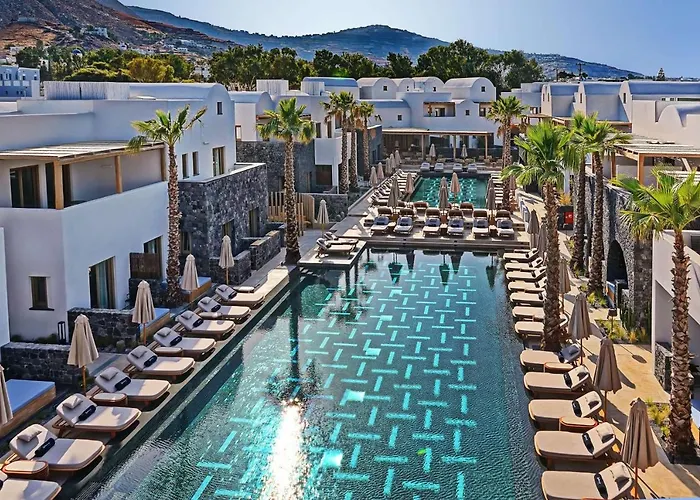 Offering luxury rooms and Wi-Fi throughout the property, Radisson Blu Zaffron Resort, Santorini Kamari is 3.9 km from the Monastery of Profitis Ilias and 10 minutes' drive from the Waterpark Santorini. Located a stone's throw from the Kamari Beach in a beach area, this resort offers a fitness club and a private garden onsite.
